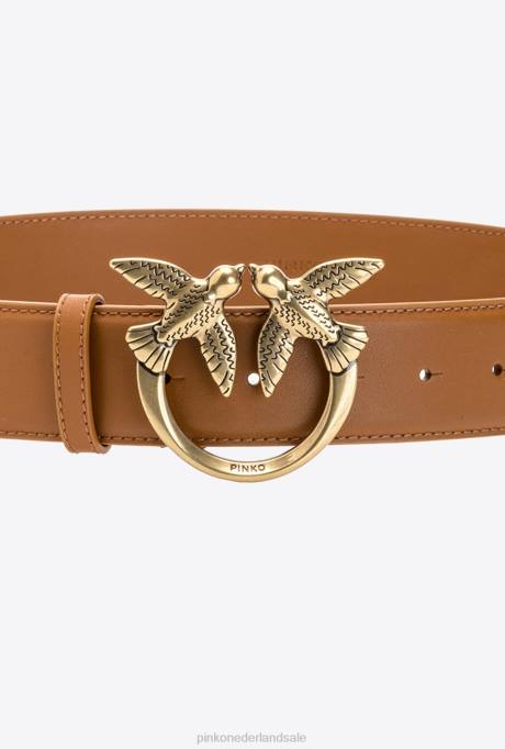 riemen | L4881016 liefde vogels lederen riem Pinko cognac-antiek goud