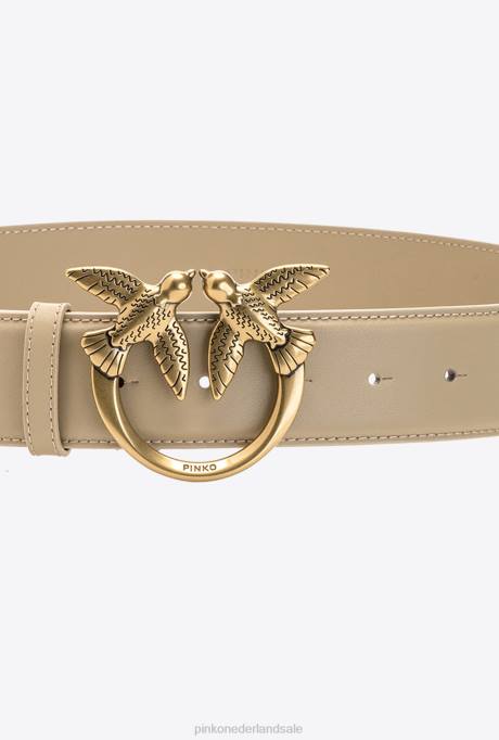 riemen | L4881017 liefde vogels lederen riem Pinko zand-antiek goud
