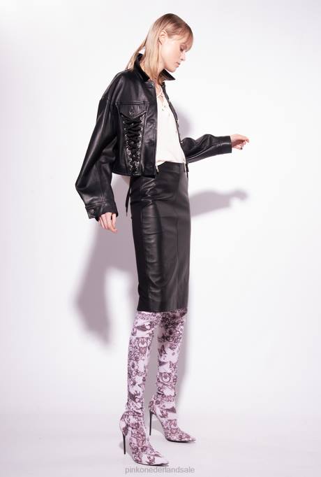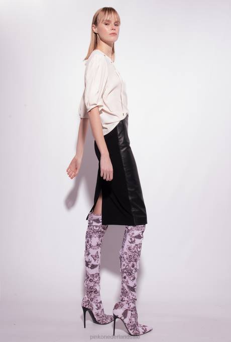 blouses | L488279 blouse met vetersluiting Pinko roze rook wit