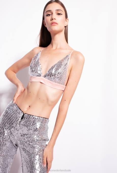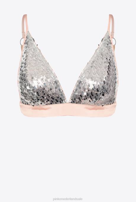 bovenaan | L488337 beha met volledige pailletten Pinko zilver/nude