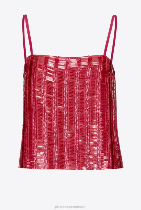 bovenaan | L488392 top met rechthoekige pailletten Pinko frambozen rood