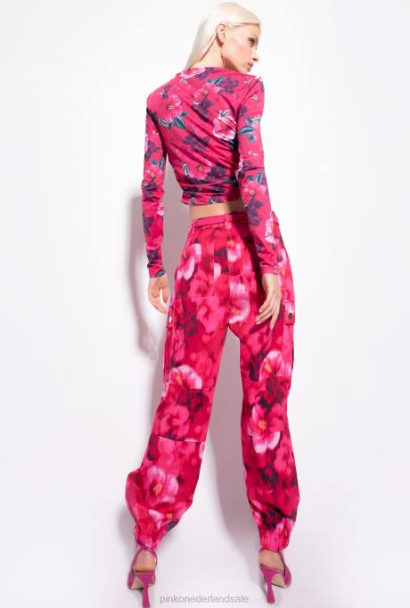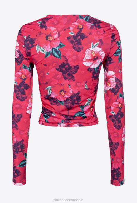 bovenaan | L488407 trui met hibiscusprint Pinko multi. fuchsia/roze