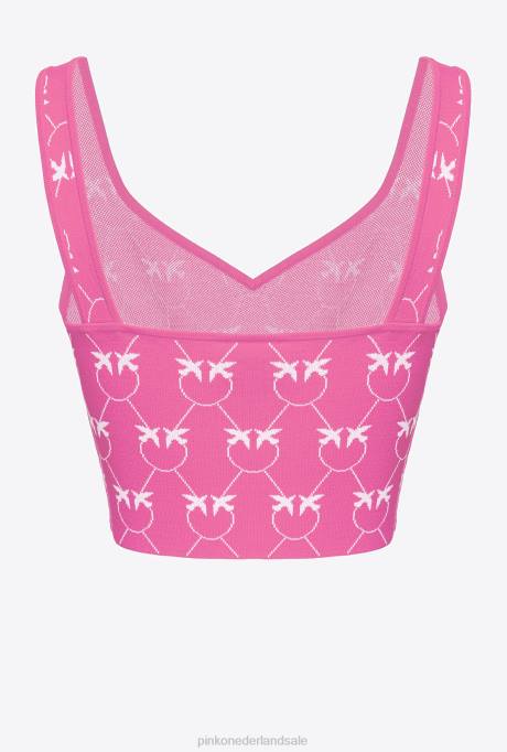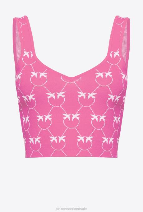 bovenaan | L488422 monogram jacquard crop top Pinko fuchsia/roze