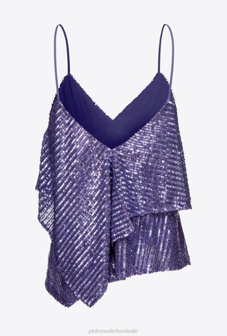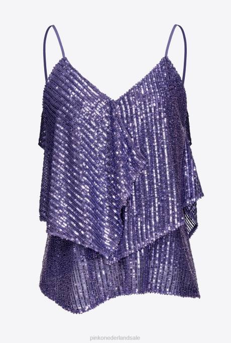 bovenaan | L488345 gestreepte top met pailletten Pinko lavendel lila