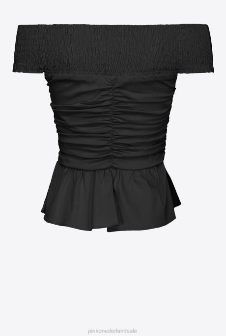 bovenaan | L488360 open schouder popeline top Pinko limousine zwart