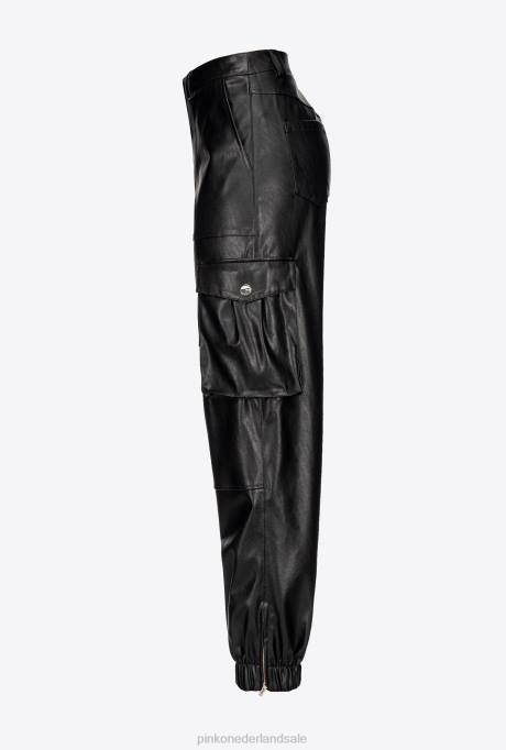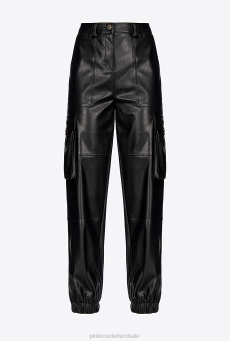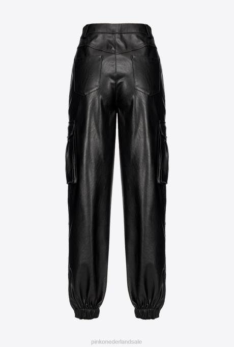 vrijetijdsbroek | L488639 Cargobroek in lederlook Pinko limousine zwart
