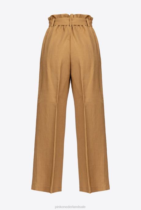 vrijetijdsbroek | L488706 linnen broek met strikceintuur Pinko mosterd