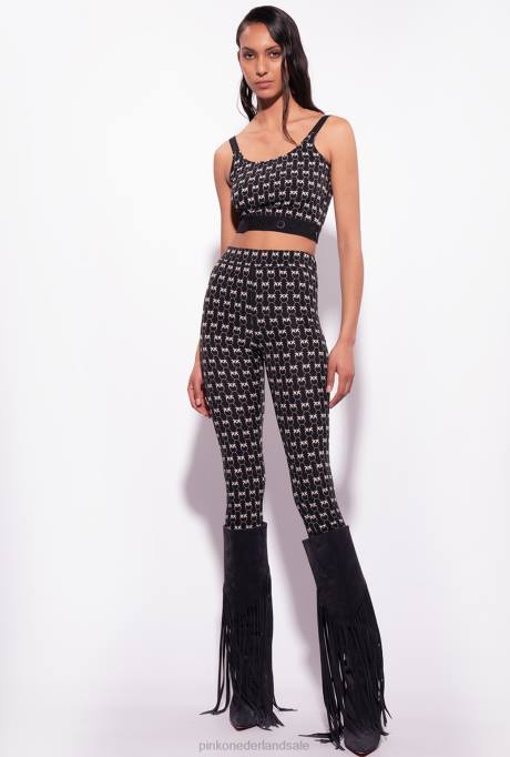 vrijetijdsbroek | L488712 legging met monogram Pinko zwart/crème