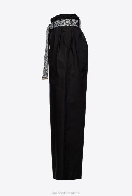 vrijetijdsbroek | L488766 wijde broek met ceintuur Pinko limousine zwart