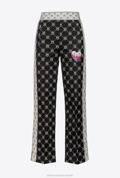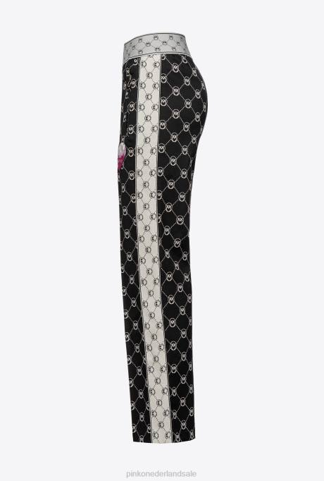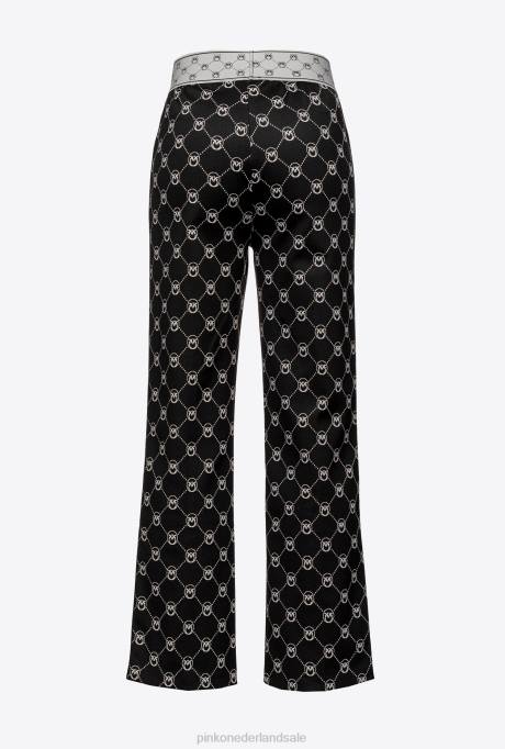 vrijetijdsbroek | L488773 gebreide jacquard-monogrambroek Pinko zwart/ecru