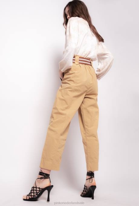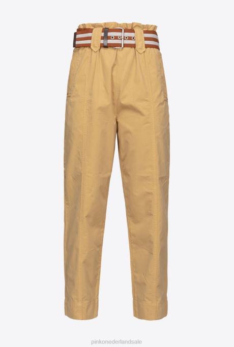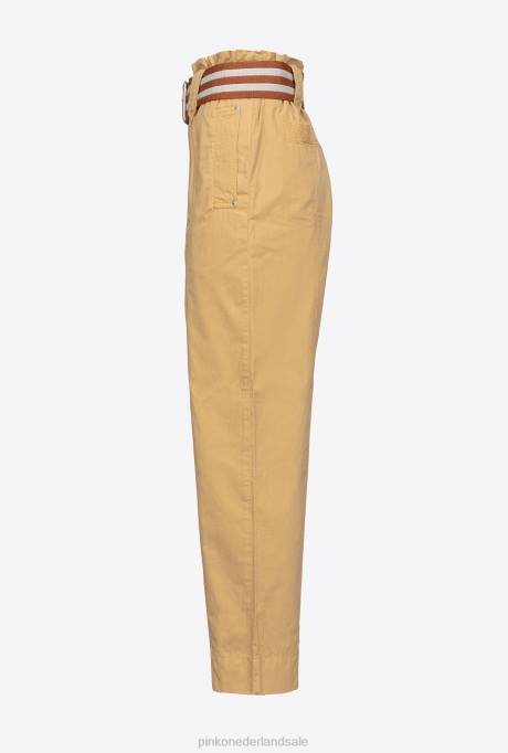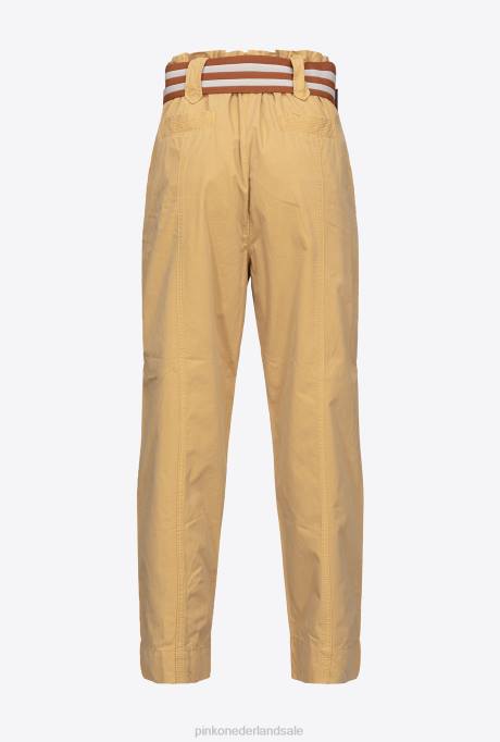 vrijetijdsbroek | L488775 broek met gestreepte riem Pinko geel bruin