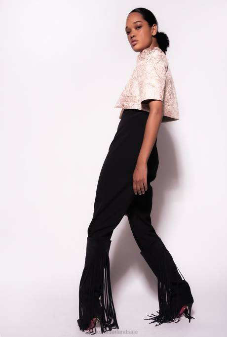 Cropped Schouderophalen In Gelamineerde Jacquardstof, Met Opvallend Geometrisch Ontwerp. Geen Sluiting, Licht Gepofte Korte Mouwen En Kleine Paspelzakjes Aan De Zijkanten. Gevoerd. - Model Is 175cm Lang En Draagt maat 40.
