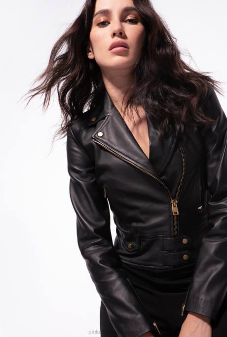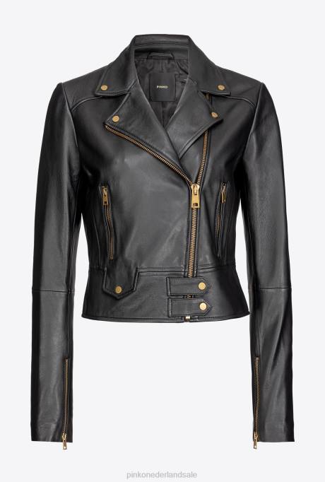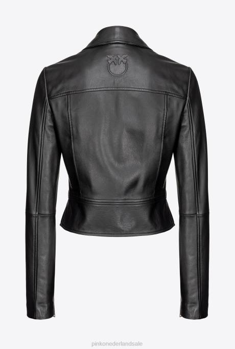 vrijetijdsjassen | L488841 nappa leren bikerjack Pinko limousine zwart