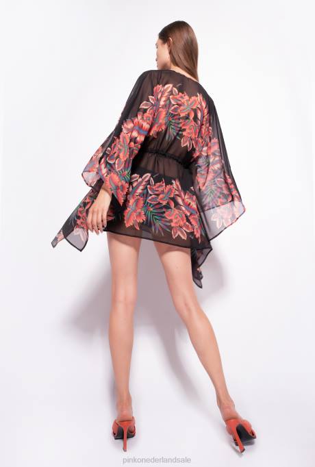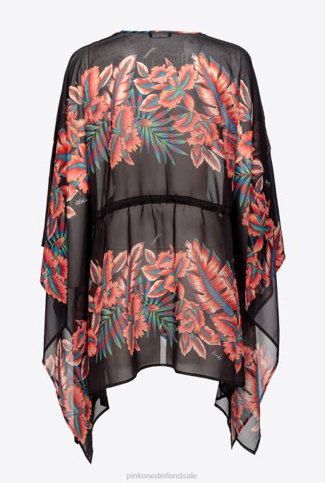 Home| kleding| collecties| badkleding | L488955 kaftan met bloemenprint Pinko multi. rood Zwart