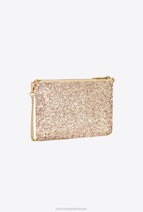 crossbodytassen | L4881199 glinsterende klassieke platte liefdestas Pinko antiek goud