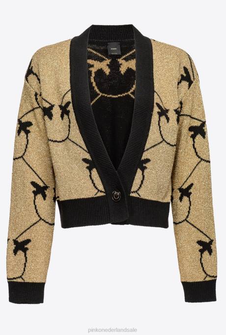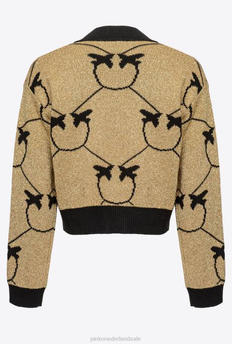 Home| kleding| gebreide kleding| vest | L488556 cropped monogram jacquard vest Pinko goud/zwart