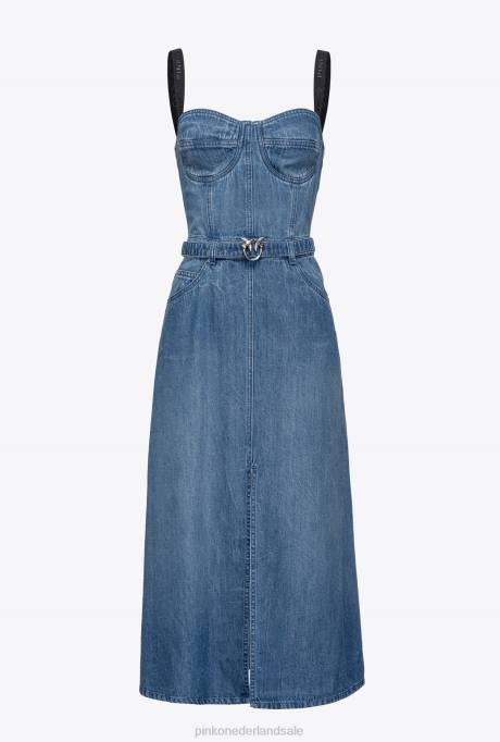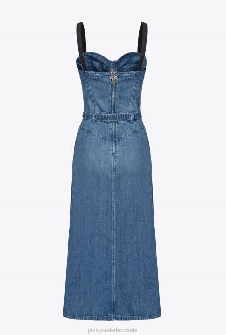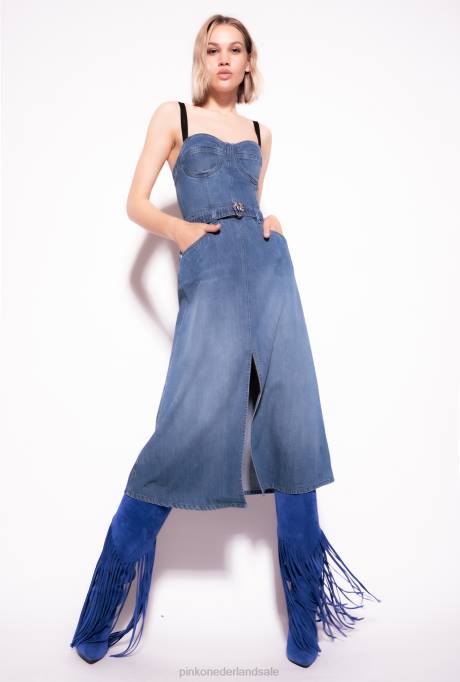 Home| kleding| jurken| halflange jurken| halflange jurken | L48856 denim bustierjurk Pinko donkere middenwas