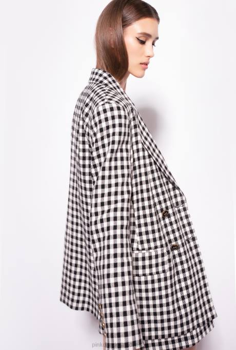 blazers | L488632 geruite blazer Pinko zwart/ecru