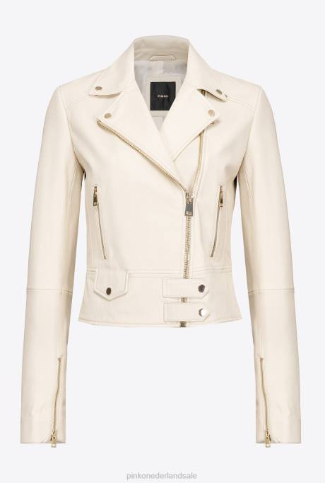 Home| kleding| jassen| vrijetijdsjassen | L488832 nappa leren bikerjack Pinko roze rook wit