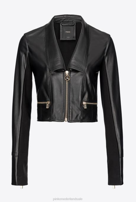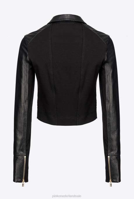 Home| kleding| jassen| vrijetijdsjassen | L488840 bikerjack van twee stoffen Pinko limousine zwart