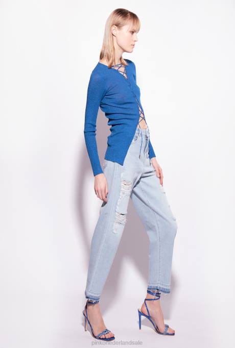 spijkerbroek | L488852 versleten mom-fit jeans Pinko lichte bleekwas