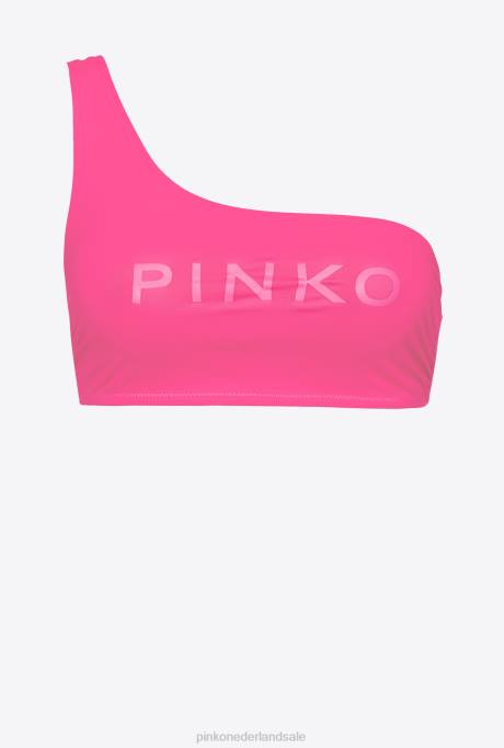One-shoulder Bikinitop Van Technische Stretchjersey, Met Gedrukt Pinko-logo Op De Voorkant.