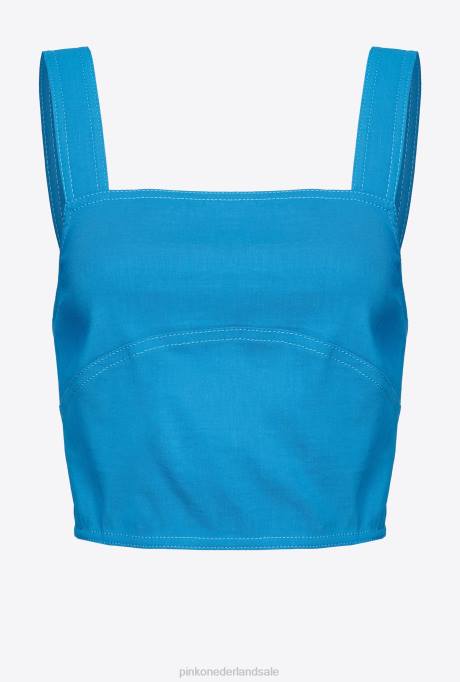 bovenaan | L488449 stretch linnen crop top Pinko directeur blauw