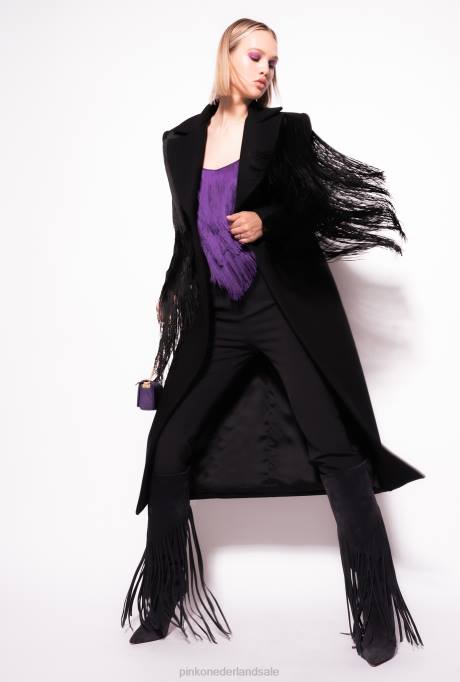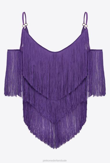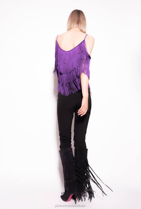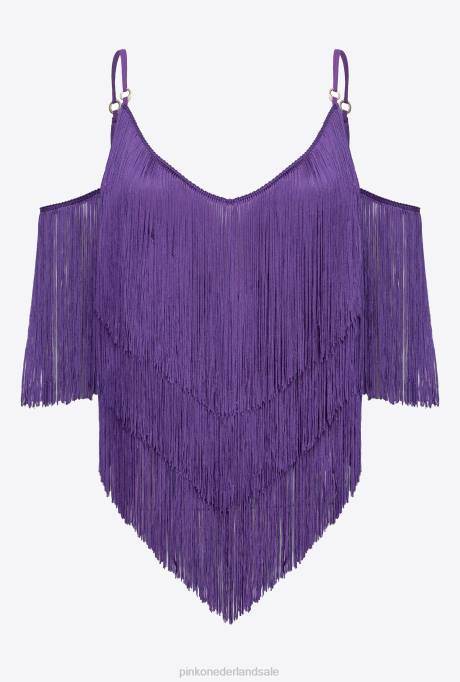 bovenaan | L488459 top met fijne franjes Pinko altviool paars