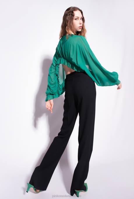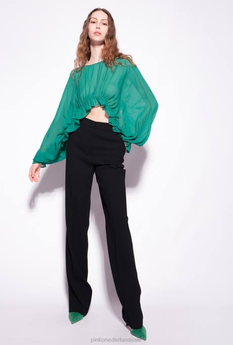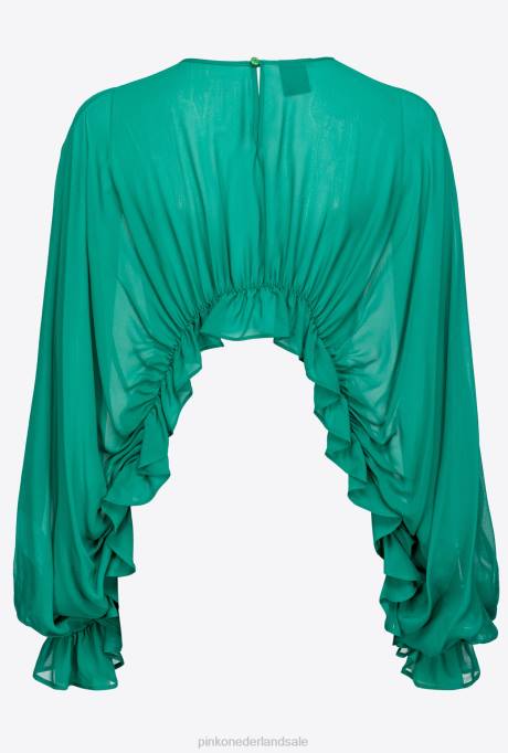 Cropped Schouderophalend Topje Van Lichte Viscose Georgette. Ronde Hals, Lange Mouwen En Ruches Met Elastiek Aan De Onderzijde. Kleine Centrale Sleutelgatsluiting Met Knopen Aan De Achterkant. Dit Kledingstuk Maakt Deel Uit Van De "dress To Impress" Partywear-capsulecollectie.