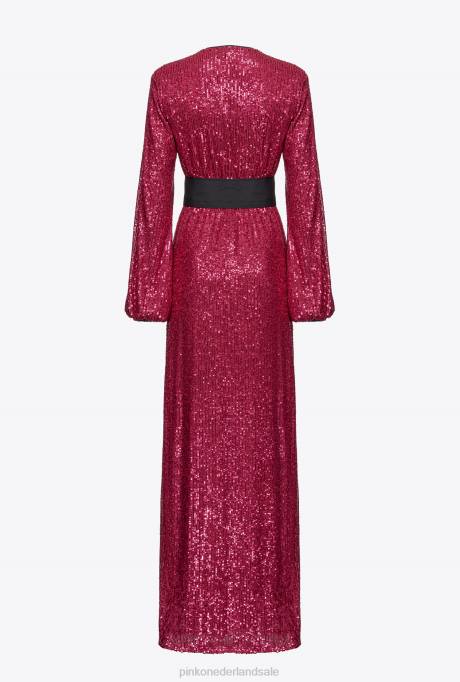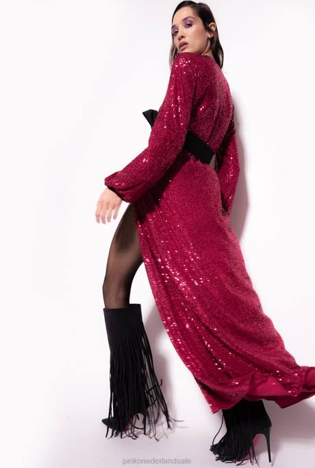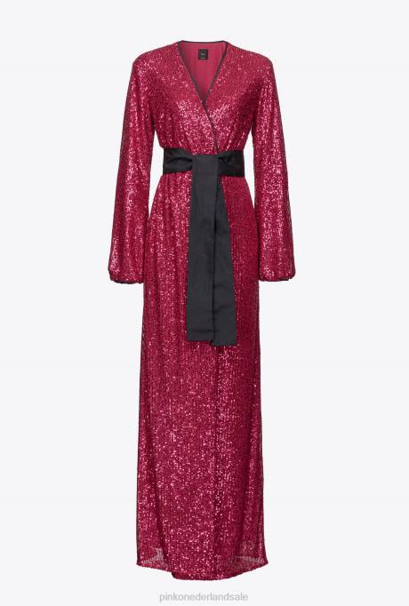 lange jurken | L488196 wikkeljurk met pailletten Pinko fuchsia/grijs
