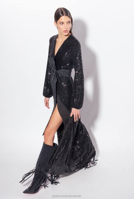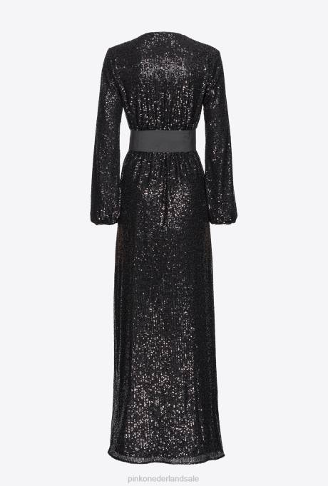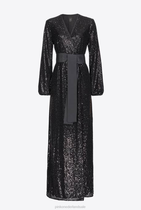 lange jurken | L488197 wikkeljurk met pailletten Pinko limousine zwart