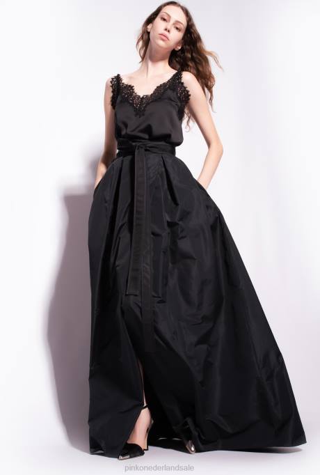 lange rokken | L488911 tafzijde maxi-rok Pinko limousine zwart