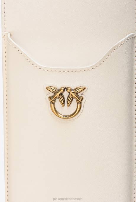 microlove-zakjes | L4881242 lederen smartphonehouder Pinko wit-antiek goud