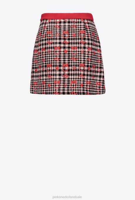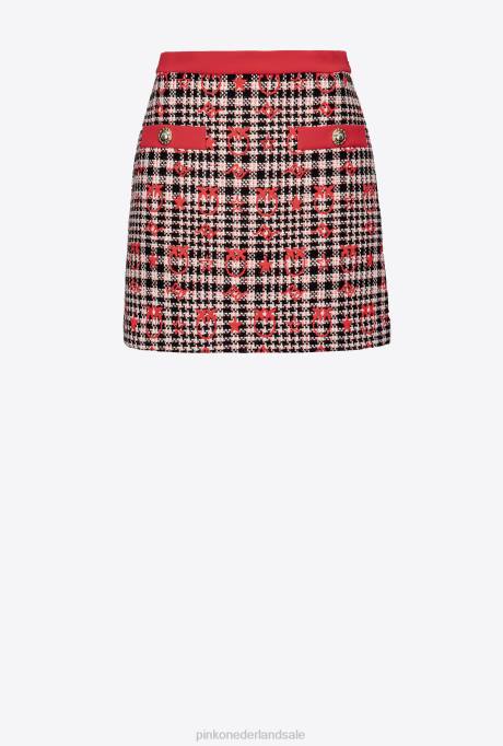 minirokjes | L488794 dwergpapegaaien jacquard minirok Pinko zwart/wit/rood