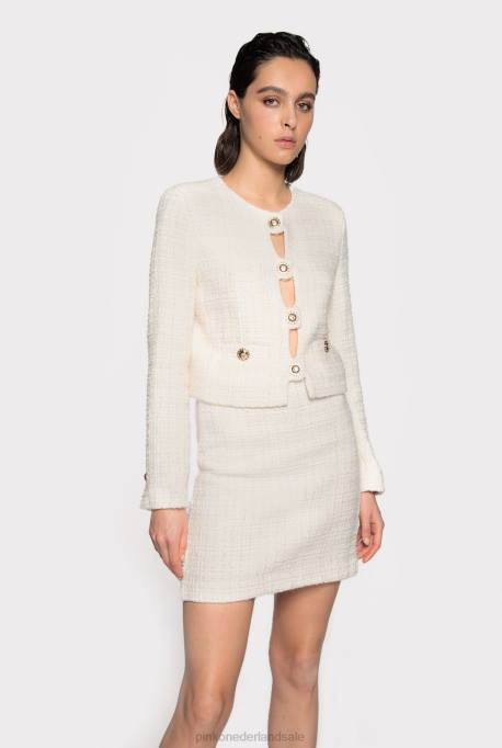 Rechte Minirok Van Tweedstof Met Dessin. Knoopsluiting Aan De Achterkant, Uitgesneden Detail En Blinde Ritssluiting In Het Midden Aan De Achterkant.