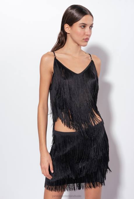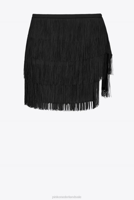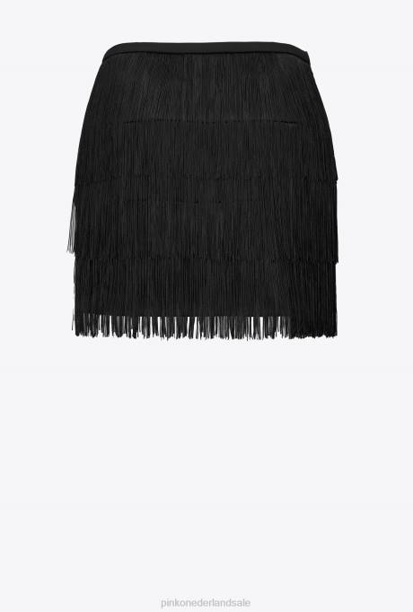 minirokjes | L488809 minirokje met fijne franjes Pinko limousine zwart