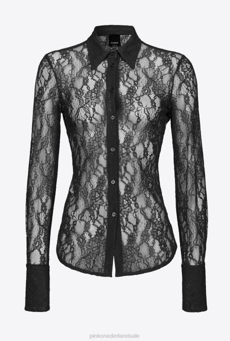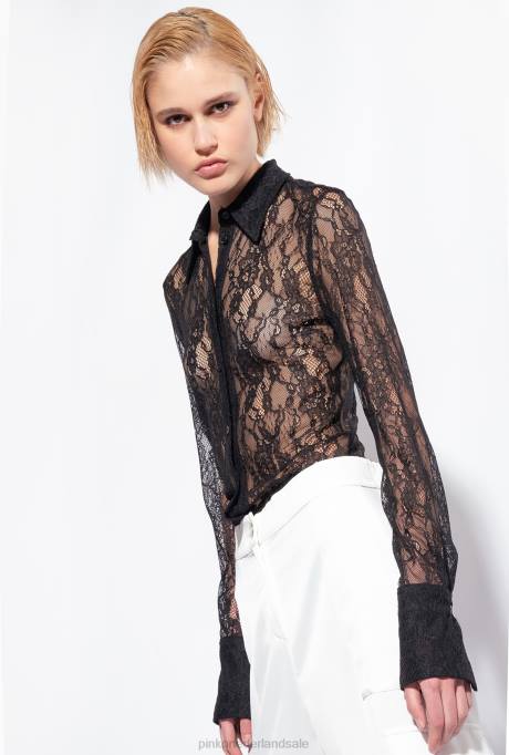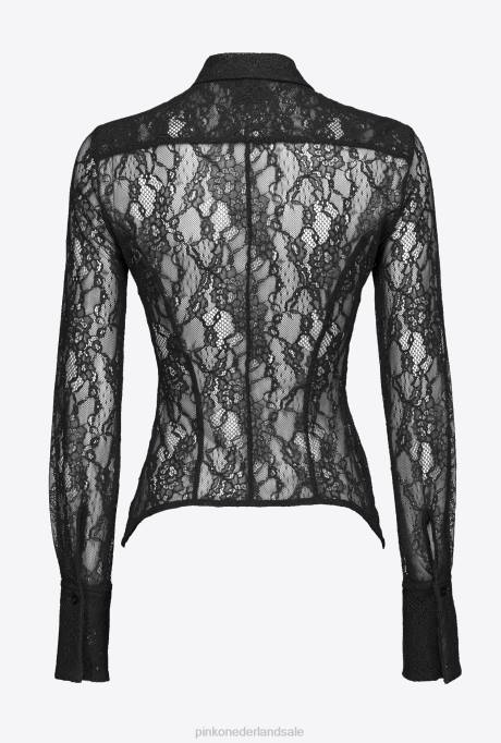 overhemden | L488261 bloemen kant overhemd Pinko limousine zwart