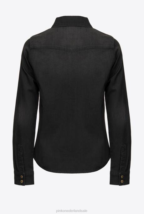 overhemden | L488316 licht spijkerhemd Pinko limousine zwart