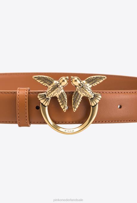 riemen | L4881004 liefde vogels lederen riem Pinko cognac-antiek goud