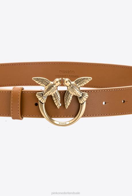 riemen | L4881009 liefde vogels lederen riem Pinko cognac-antiek goud