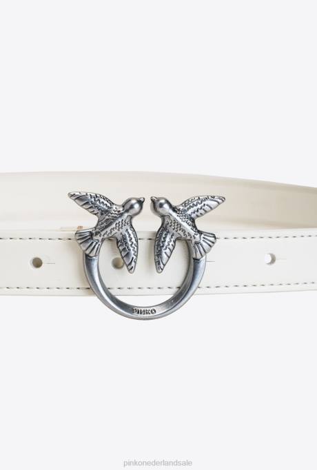 riemen | L4881026 dwergpapegaaien dunne leren riem Pinko wit-oud zilver