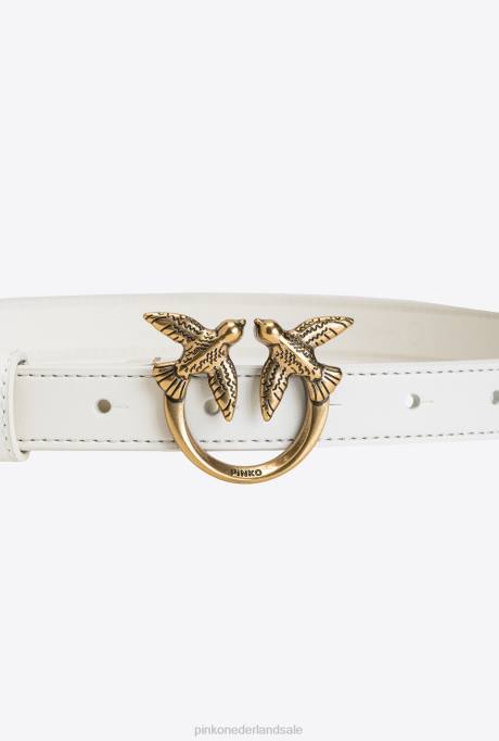 riemen | L4881029 dwergpapegaaien dunne leren riem Pinko wit-antiek goud