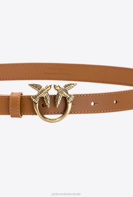 riemen | L4881031 dwergpapegaaien dunne leren riem Pinko cognac-antiek goud