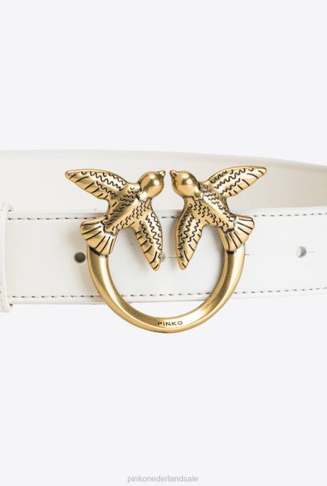 riemen | L4881042 liefde vogels lederen riem Pinko wit-antiek goud
