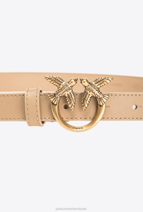riemen | L488983 dwergpapegaaien dunne leren riem Pinko zand-antiek goud