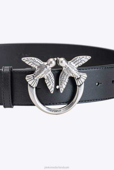 riemen | L488995 liefde vogels lederen riem Pinko zwart-oud zilver