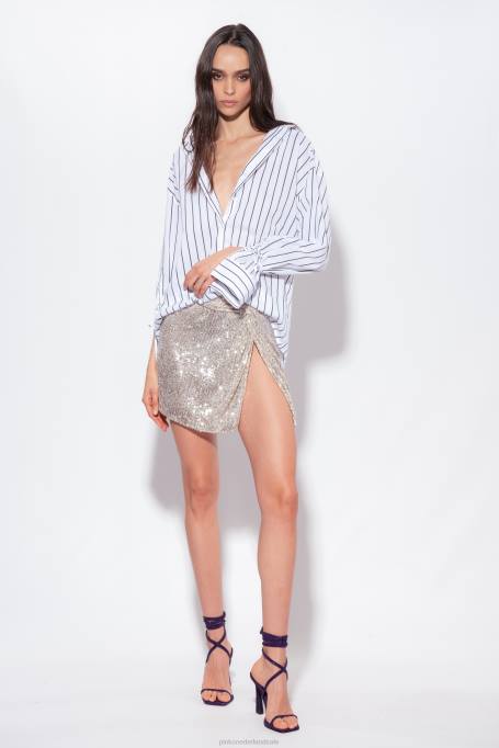 Gedrapeerde Sarong-minirok Met Paillettenborduursel En Verticaal Gestreept Patroon. Tailleplooi Aan De Zijkant, Waardoor Beweging Aan De Voorkant Ontstaat.