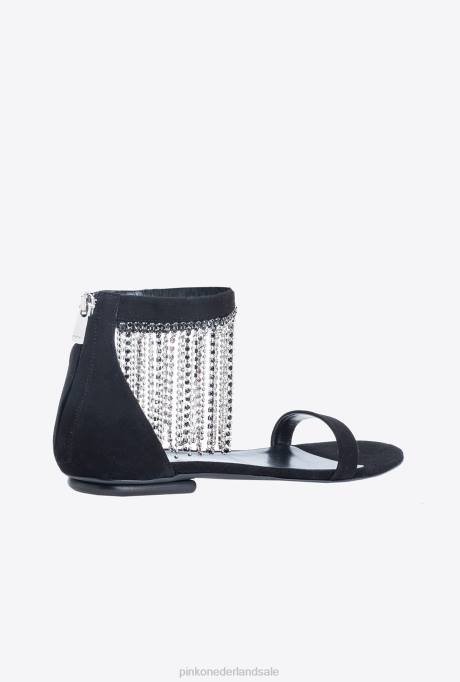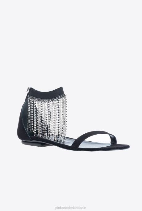 sandalen | L4881077 platte sandalen met strass franjes Pinko limousine zwart