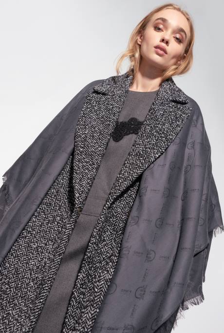 Grote Jacquardsjaal Van Katoen En Modal, Met Overal Een Monogrammotief. Franje Langs De Rand.