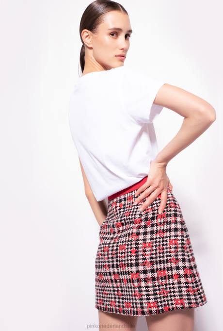 T-shirt Met Korte Mouwen Van Katoenen Jersey, Met Gedrukt Pinko-logo, Gepersonaliseerd Met Een Klein Konijntje En Geborduurde Bloemen. - Model Is 177cm Lang En Draagt maat 40.